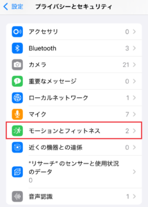 設定>プライバシーとセキュリティ>モーションとフィットネスを開きます。